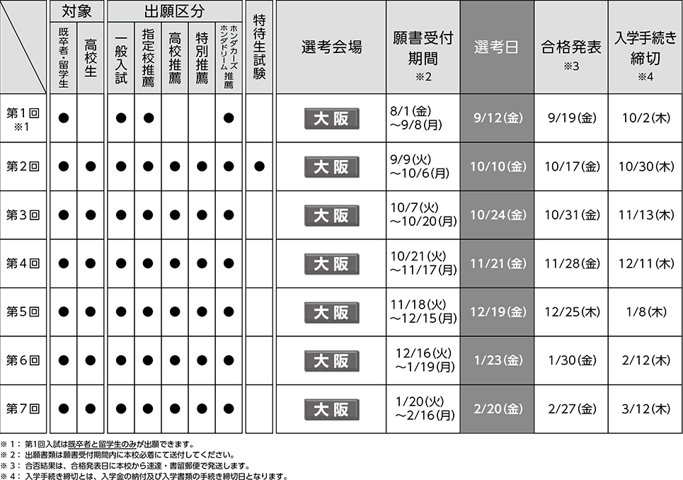 入試の試験会場は大阪(ホンダテクニカルカレッジ関西)となります。